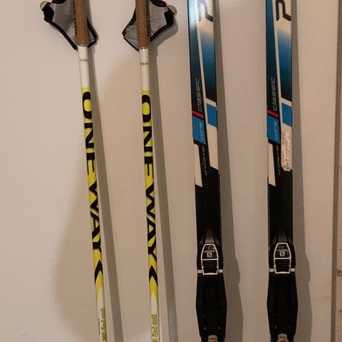 Sukset ja sauvat ovat lähes uudenveroisessa kunnossa ja niissä on helppohoitoinen ja vaivaton karvapohja. Täydellinen paketti, jos kaipaat nuorelle hyväkuntoista, valmista settiä.