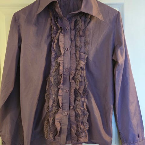 Kk 49cm, pituus edessä 59cm, hihan leveys olalta kainaloon n. 23,5cm. Kokoarvio 38/40, kapeahko malli. Viimeisessä kuvassa todellisimmat sävyt.