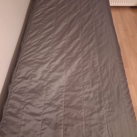 Jyskistä ostettu parisängyn peitto. Ehjä ja perussiisti, mutta ollut useamman vuoden käytössä.