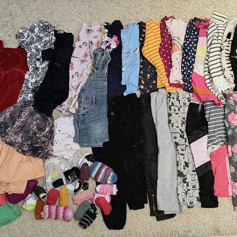 Hyväkuntoista vaatetta. Muutama tahra saattaa olla jossain vaatteessa, en syynää tarkemmin. Valtaosa tahratonta. Mukana useampia uutena ostettuja vaatteita, joita käytetty kerran tai pari, eli uuden veroisia.