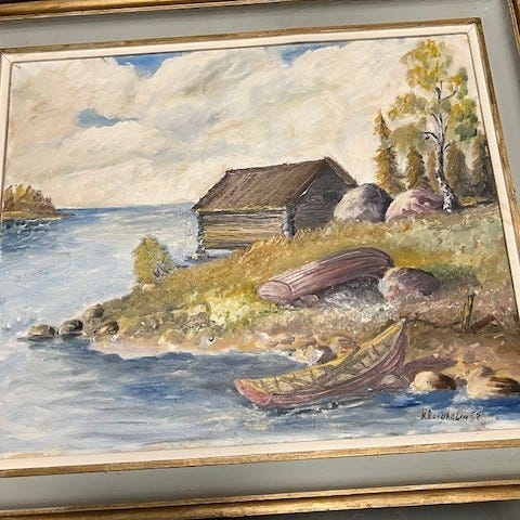 Näyttävä maalaus. Koko 64 x 76 cm. V. 74 maksoin Puhoksen ostoskeskuksessa taulusta 100 mk.