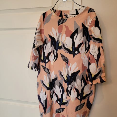 Ihana, arkkitehtoninen, vastuullisen kotimaisen Aarre-merkin arkimekko. Polvipituinen, erittäin laadukas, valmistettu Portugalissa. Pyöristetyt halkiot. Minulla jäänyt harmillisen vähälle käytölle, joten kunto uudenveroinen.