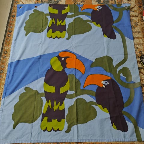Pepe kankaasta ommellut verhot. Ylä- ja alareunaan on ommeltu lakanakangasta. Kunnossa ei moitittavaa. Nouto tai toridiili