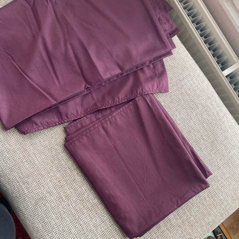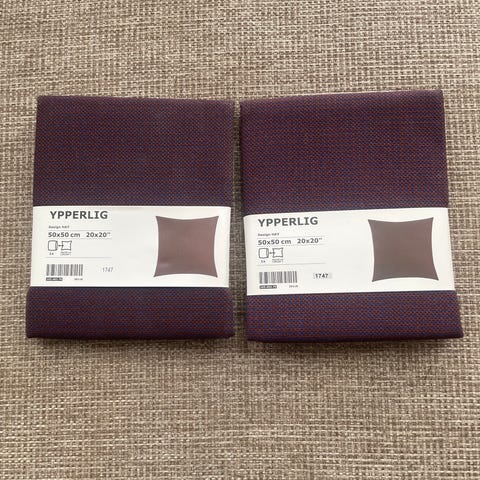 Kaksi tyynynpäällinen liilan värisenä. Plus tyynyt. 50x50