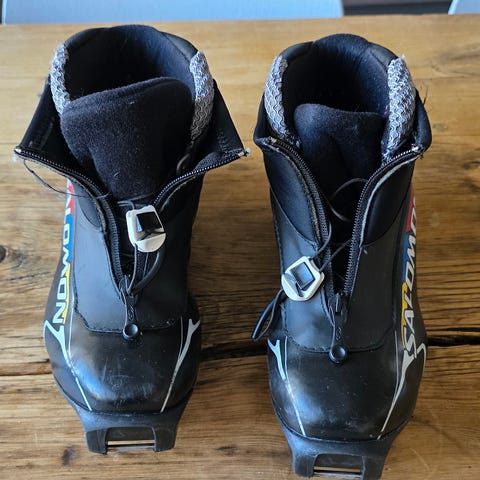 Koko 33,5. Väri musta valkoisilla yksityiskohdilla. Monossa on nilkan yli tuleva tarrakiristys ja vetoketjulla suljettava kenkäosa. Vetoketjun slla nyörikiristys. Monot ovat hyväkuntoiset ja ehjät. Nimikoitu. Sopivat SNS Pilot sidetyyppiin. Nouto onnistuu, sovitus onnistuu, postitus onnistuu, toridiili onnistuu.