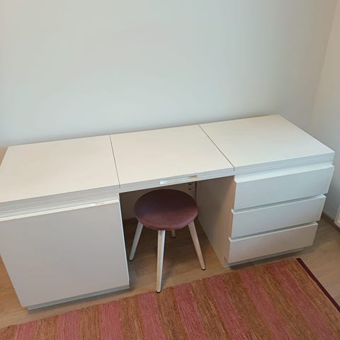 Muuramen klassikko meikki-/ työpöytä. Siisti ja hyväkuntoinen ikäisekseen, toki ajan tuomaa patinaa.
