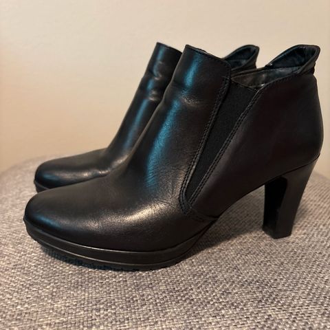 Tamaris korkokengät nilkkurit, koko 38. Väriltään mustat. Kengissä on keskikorkea korko ja pyöristetty kärki. Pohjassa on kuvioitu kumipohja paremman pidon takaamiseksi. Sopivat arki- ja juhlakäyttöön. Vähän pidetyt. Kunto moitteeton.