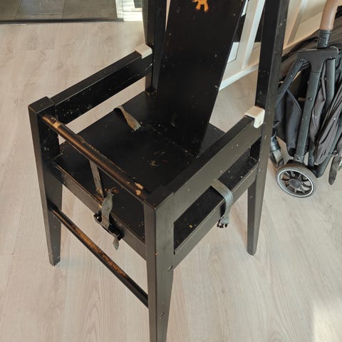 Myydään yhdellä lapsella käytössä ollut IKEA Blåmes musta syöttötuoli + tarjotin. Alkuperäinen musta maalipinta. Pieniä käytön jälkiä mutta muuten oikein siistissä kunnossa vielä. Mukaan kuuluu turvavyö.