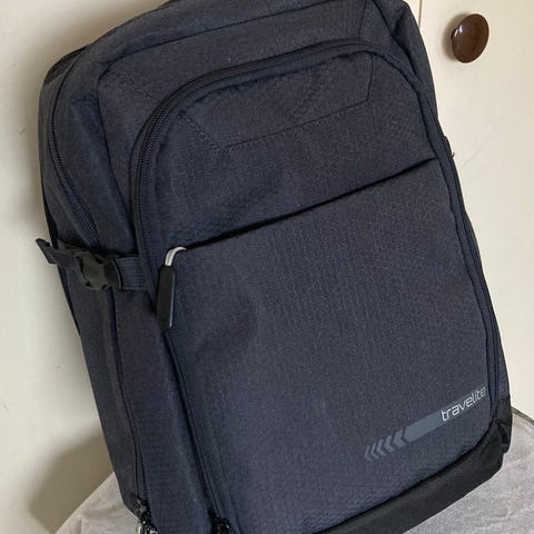 Nordace Siena reppu. Muuten uutta vastaavassa kunnossa, mutta vetoketjun yhdestä vetimestä nahkainen vedin irronnut (kts. kuva 2), on tosin tallessa repun sisällä. Selkäpuolella kätevä "piilotasku" esim. passille + arvotavaroille reissatessa, lisäksi hihna, jolla repun voi pujottaa ison matkalaukun vetokahvan ympärille, jolloin reppu kulkee kätevästi matkalaukun päällä. Sisällä useampi pienempi tasku, yksi vetoketjulla. Täysin erillinen pehmustettu läppäritasku. Pää- ja läppäritasku päältä avattavia, lisäksi molemmilta sivuilta pitkät vetoketjulliset taskut repussa uloimpana (kuvat 1 ja 3). Toisessa kyljessä kuminauhalla itsekiristyvä tasku juomapullolle ja toisella puolella USB-läpivienti (kuva 5), jonka avulla esim. repun sisällä olevaa akkupankkia voi käyttää suoraan repun kyljestä vähentäen johtosählinkiä. Mukana myös sadesuoja heijastinnauhalla. Menee heittämällä lentoyhtiöiden käsimatkatavaramittoihin.