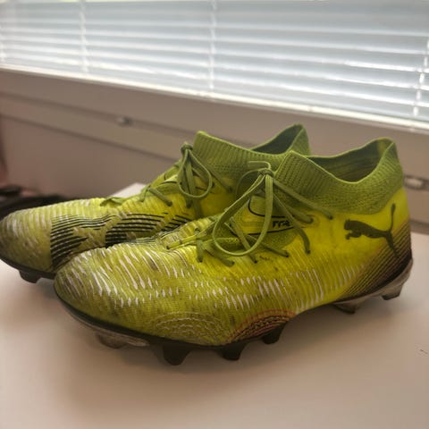 Puma Future nappula-jalkapallokengät. Väri harmaa ja limevihreä, limevihreät nauhat ja sisäpohja. Koko 39. Muutaman kerran käytetty.