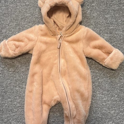 Pehmeä vetoketjullinen vauvan haalari söpöllä poro-teemalla. Päällinen polyesteriä, vuori puuvillatrikoota. Materiaali joustaa hieman