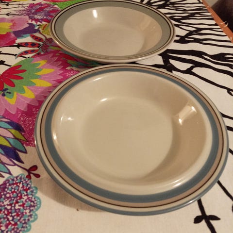 Kolme keittolautasta kaieton, kiisselin, jugurtin tms. nauttimiseen. Kaikki kolme ovat naarmuttomia ja vailla vikaa.
