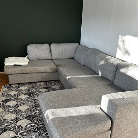 Beige divaanisohva + rahi. Divaaniosan puoli ei ole vaihdettavissa. Haku mahdollinen maaliskuun aikana. Sohvan saa puolitettua kuljetusta varten.