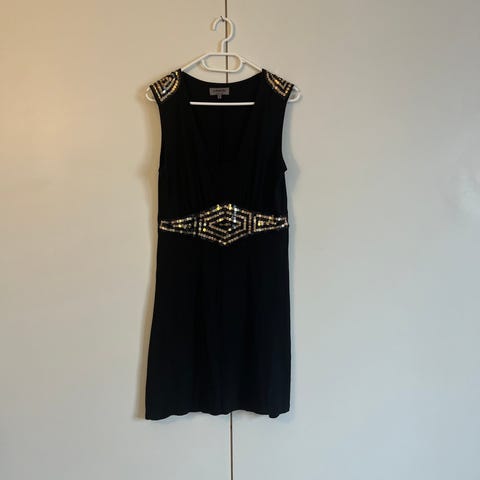 Ihana Even&Odd juhla/cocktailmekko naisille. Koko M. Mekko on musta ja valmistettu viskoosista 95% ja 5% elastaanista. Mallissa on niskan taakse solmittava kaulus ja vyötärön kohdalla koristeelliset, kullanväriset paljettinauhat. Helma on kevyesti laskeutuva. Sopii juhla- ja iltatilaisuuksiin.
