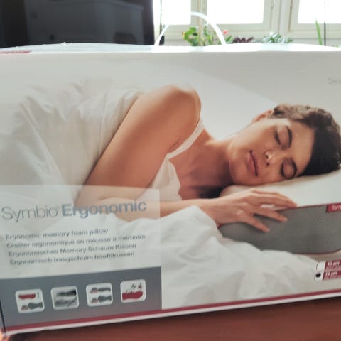 Memory foam tyynny, vaikka oli käytetty todella vähän, tyynynpäällinen säilytyksessä kellertää.