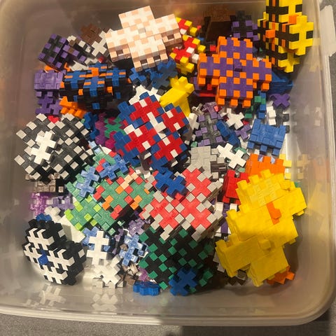 Näitä on paljon! Kauppa kasillinen isoja plus plus palikoita eri väreissä.