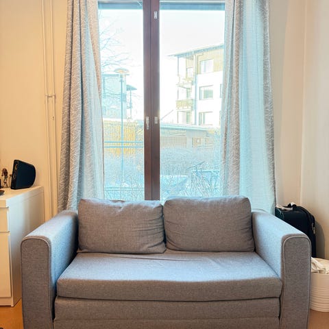 Hakusanat: levitettävä sohva harmaa sohva kahden istuttava sohva vierassänky