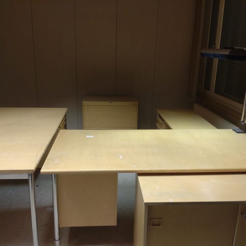 Pöytään asennettu johtokouru jota pitkin johdot saa siististi tulemaan pöydälle.
