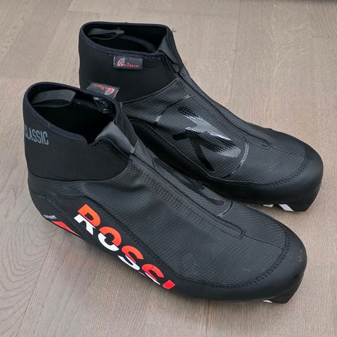 Neljä vuotta sitten ostetut Rossignolin laadukkaat monot murtomaahiihtoon. Todettu itselle liian pieniksi. Muuten hyvässä kunnossa, mutta vasemman jalan päkiän kohdalta kangas on murtunut pinnasta (ks kuva). Ei ole vaikuttanut itselläni käyttöön mitenkään. Ovh 184€.