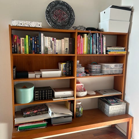 Siistikuntoinen, 2 irrotettavaa hyllyä joiden korkeutta saa säädettyä.