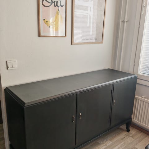 Vekestä ostettu hyvä ja ehjä iso senkki. 4 isoa säilytyslokeroa vedettävillä ovilla. Alla tukijalat että kestää hyvin pystyssä.