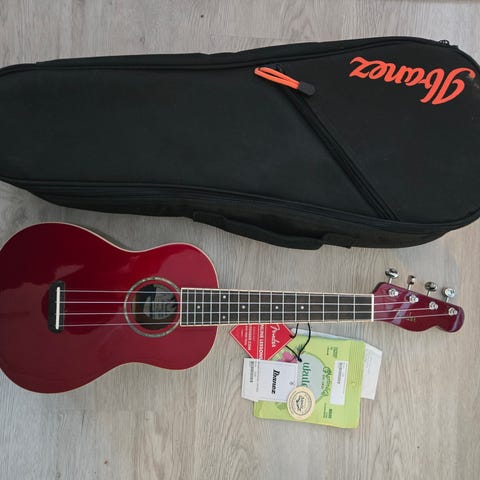 MSA Guitar Classic X6 akustinen kitara, rungon värinä pinkki ja sydämen muotoinen ääniaukon koristelista. Remo RU-150-YEL ukulele, rungon värinä keltainen. Molemmissa soittimissa on nylonkielet ja ne toimitetaan pehmeiden kantopussien kanssa. Kitara sopii lapsille ja ukulele aloittelijoille tai harrastekäyttöön.