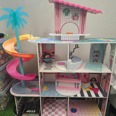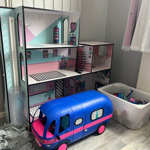 L.O.L. Surprise nukkekoti ja asuntoauto. Monikerroksinen nukkekoti, jossa useita huoneita, portaat ja yksityiskohtaisia sisustuselementtejä. Mukana kalusteita ja pieniä tarvikkeita, jotka sopivat L.O.L. Surprise -nukeille. Lisäksi settiin kuuluu L.O.L. Surprise -teemainen asuntoauto, jossa on pyörät ja sisätilat leikkejä varten. Soveltuu leikkeihin L.O.L. Surprise -nukkien kanssa.