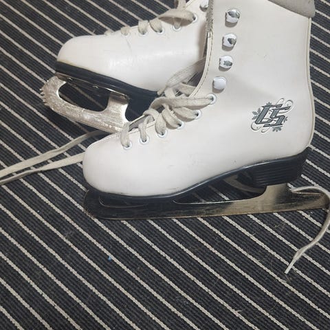CCM lasten taitoluistimet, koko 4. Pinnassa on paljon käytön jälkiä, muuten ei moitittavaa.