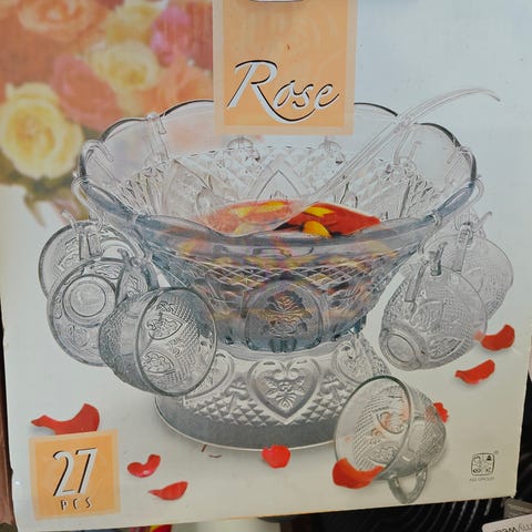 2 eri kokoista kulhoa, kauha, 6 mukia ja mukien kiinnikkeet.