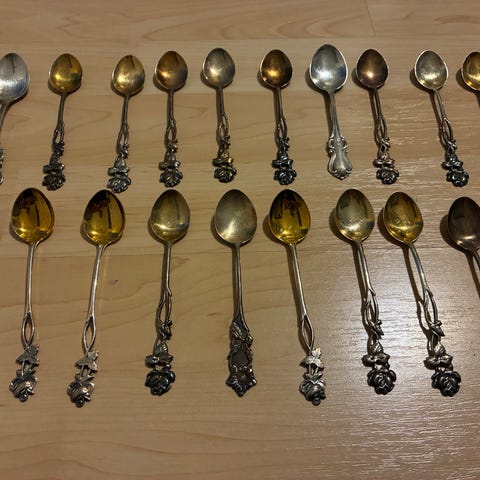 Teekusikat alpakkaa. Kukka-aiheinen posliiniupotus, näistä askartelee vaikka kauniita korvakoruja!