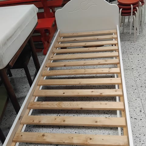 Siisti, hajuton paksu patja. Kuvassa näkyy sängyn sälepohjasta jääneet jäljet.