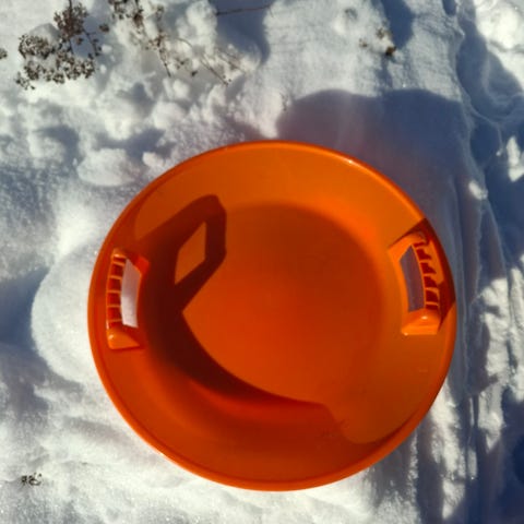 Myydään ehjät sininen ja punainen pulkka. Pohjassa metallivahvistukset.
