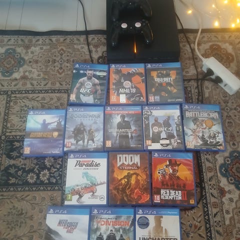 Ps4 Sony Playstation 4 slim pelikonsoli piuhat + Far Cry 5 ja Call of Duty WWII