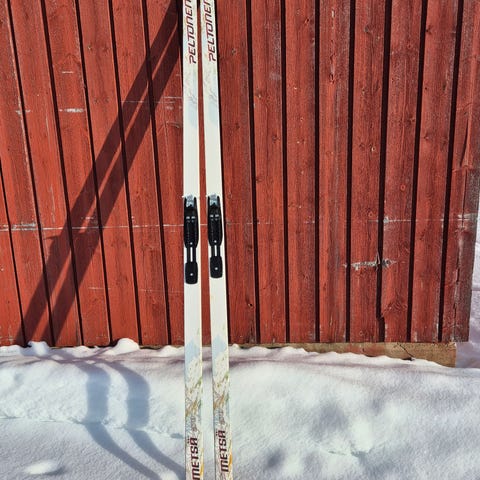 Vähän parempaa Peltosen skin suksea tarjolla. Suksen pituus 202, ollut n. 80 kg hiihtäjällä. Rottefellan säädettävällä siteellä. Pohjissa ei mitään hiihtoa haittaavaa naarmua. Ei kertaakaan hiottu. Toimitan ennakko-ja postimaksua vastaan.