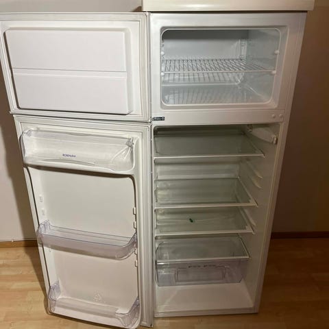 Siisti ja toimiva valkoinen jääkaappipakastin. Yläosassa jääkaappitila ja alaosassa erillinen pakastin.. Korkeus: 170cm, Leveys: 54cm, Syvyys 60cm. Jäänyt ylimääräiseksi.