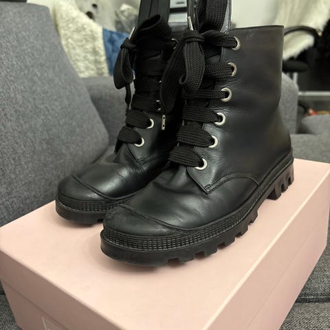 Pieniä kulumajälkiä tuossa paksussa pohjassa, kuvista näkyy myös pienet jäljet nahan pinnassa. Miel nouto.