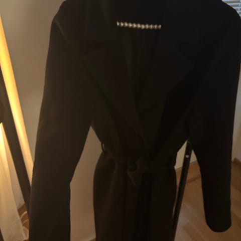 & Other Stories pitkä villakangastakki naisille. Koko 38. Väri musta. Pontetorto villakangas, vuorattu sisäpuolelta. Edessä napitus ja vyö, sivuilla taskut.