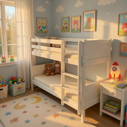Useassa kodissa majaillut ja monen mestarin maalaama ja tarroittama vanha kerrossänky. Sänkyjä voi käyttää myös erikseen. Täyspuuta, pohjat jonkinlaista levyä. Pituus 190 cm, leveys 74 cm, korkeus 130 cm.