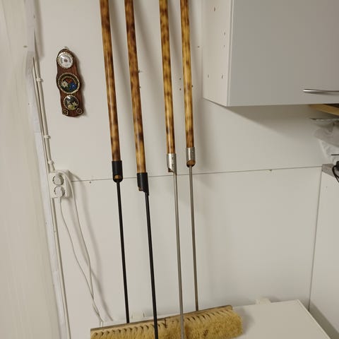 Hierrin/Härkin tehty käsityönä nuoresta männynlatvasta. Pituutta 70cm ja H 45e yhteensä.