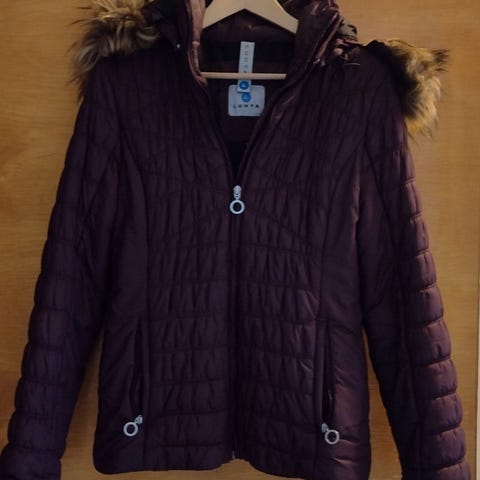 Erittäin hyvässä kunnossa oleva vaalean violetti J.A.P Company merkkinen talvitakki, koko S. Vetoketjuttomia läppätaskuja edessä 2 kpl. Sekä hupun että karvareunuksen saa molemmat erikseen irti.