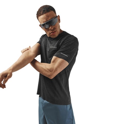 Mukava, saumaton treenipaita hengittävää materiaalia takaa erinomaisen mukavuuden. Suunniteltu juoksuun, mutta sopii hyvin myös muuhun harjoitteluun. Normaali istuvuus.
