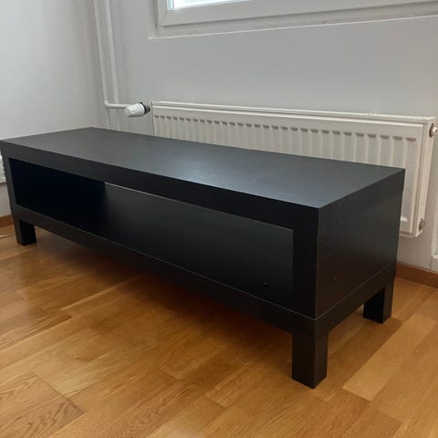 Tumma Ikea lack tv-taso. Elämänjälkiä näkyy, muuten hyvässä kunnossa.