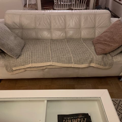 Myydään kuvan nahkasohva uuden tieltä. Sohva jämäkkä ja hyvä istua. Tausta keinonahkaa, muuten aitoa nahkaa. Moitteena esteettiset kissan kynnen tekeleen joita ei ole koetettu maskeeraus piiloon.