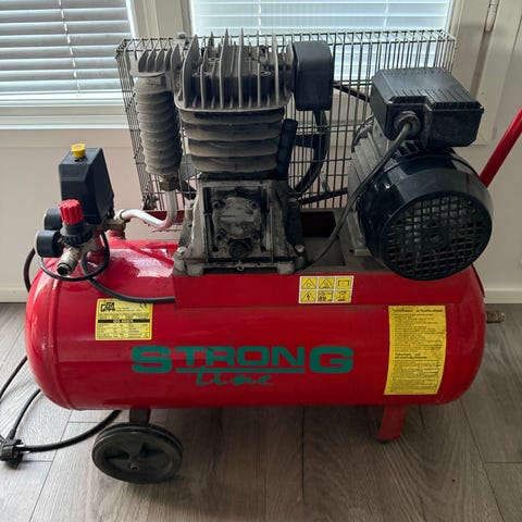 Vähäisellä käytöllä ollut Herkules-merkkinen ilmakompressori. Säiliötilavuus 50 litraa, teho 2 hv ja maksimipaine 10 bar.
