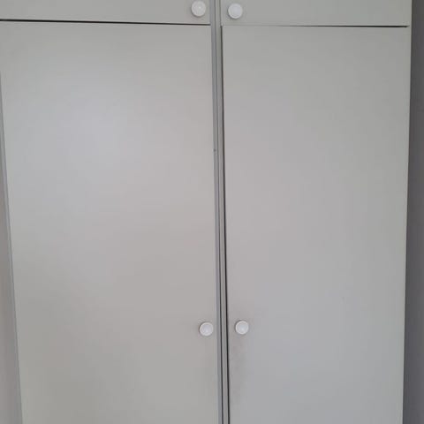 Ahkerassa käytössä ollut kolmiosainen kaapisto, leveys 180 cm, korkeus 236 cm, syvyys 60 cm. Kaapit voi purkaa tai viedä sellaisenaan.