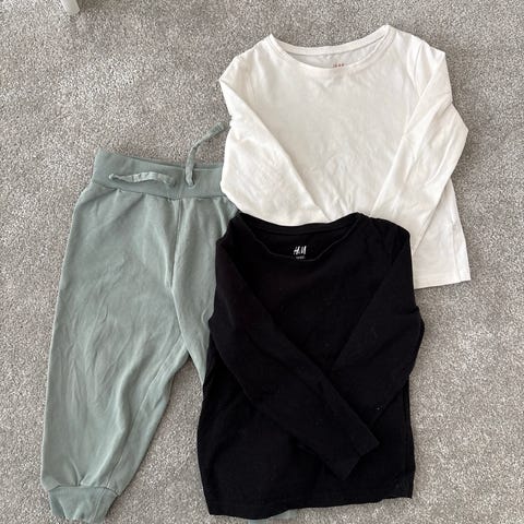 Erittäin vähän käytetyt GAP:n beiget housut ja Beben tummanharmaa neuletakki