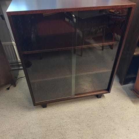 Moduuleista koostuva kirjakaappi /vitriini koivua, ylös kippavilla lasiovilla. 3 ylintä osaa syvyys 30 cm, alin mappikaappi, jonka syvyys 38. Kaikki osat hyvässä kunnossa, kuljetukseen helppo purkaa osiin. Merkki oletettavasti Ekenäs, tästä ei täyttä varmuutta. Nouto. Myytävänä myös toinen samanlainen kokonaisuus.