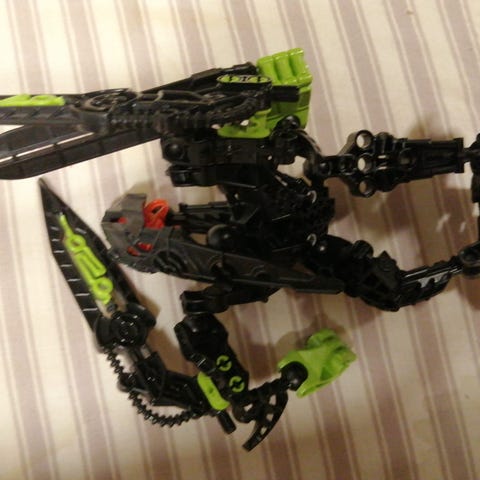 LEGO Bionicle hahmo. Musta rakennettava figuuri nivelöidyillä raajoilla. Sopii LEGO Bionicle -teeman kokoelmiin ja leikkeihin muiden Bionicle-osien ja -hahmojen kanssa.