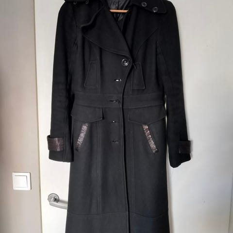 Mascara London takki koossa 36. Kangas on 55 prosenttia villaa (41 % villa, 7 % alpakka, 7 % mohair). Taskut molemmin puolin.
