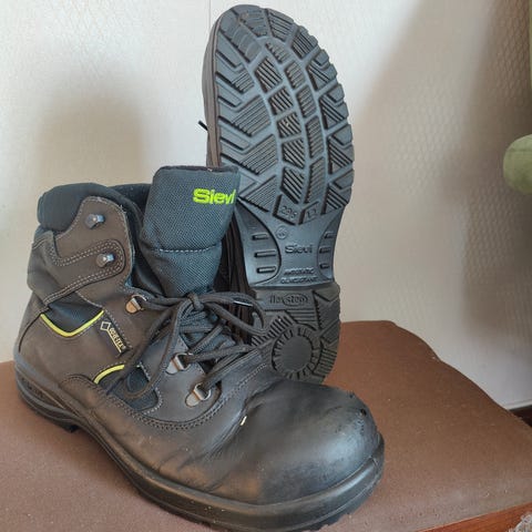 Kuin uudet työkengät esiin käännettävillä nastoilla. 3 kertaa olleet jalassa, tuoksuvat uudelta. Postitus onnistuu